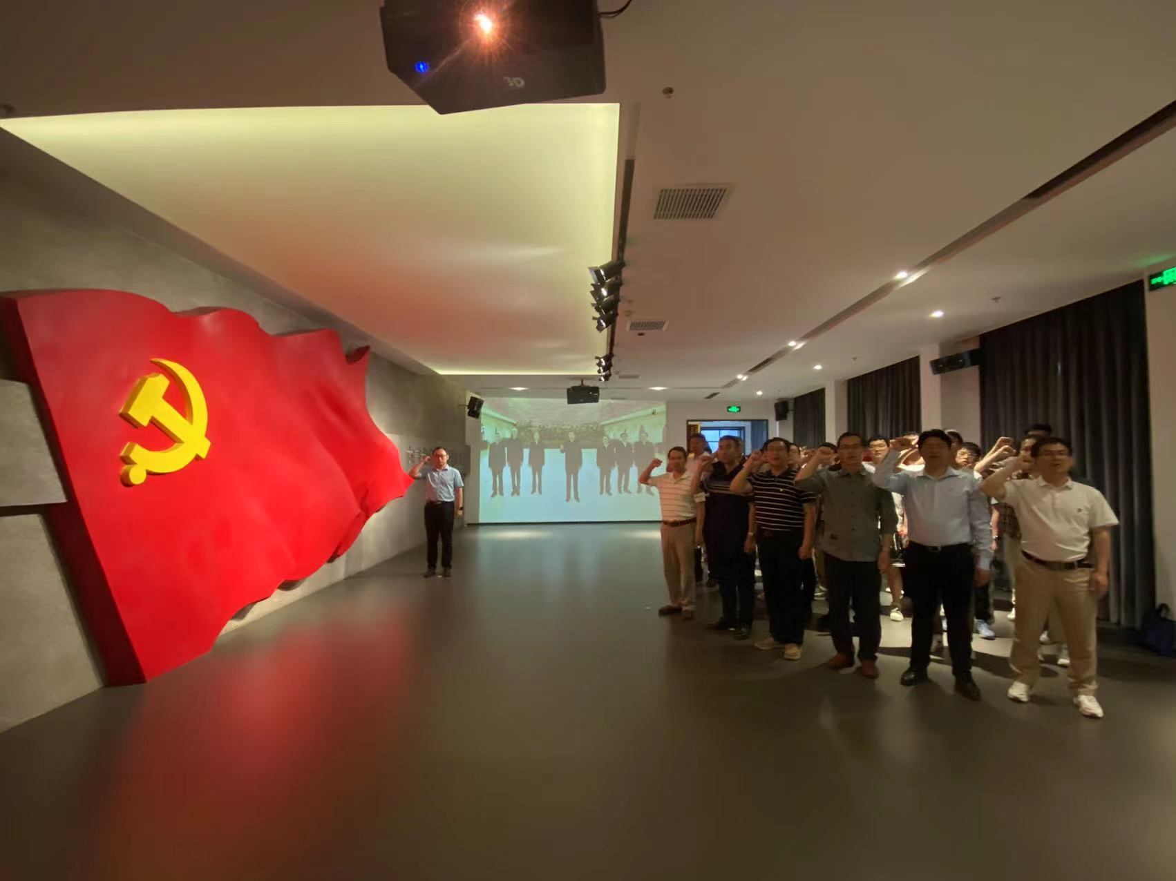最后在肃穆的宣誓大厅,全体人员在党委书记、常务副院长龙腾的带领下重温入党誓词:“我志愿加入中国共产党!拥护党的纲领……”